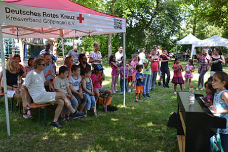 Bei einem bunten Aktionstag für Einheimische und Auswärtige ging es auf dem Christkönig-Spielplatz im Göppinger Reusch am 4. Juli heiß her. Doch die hohen Temperaturen schreckten die rund 100 Besucher nicht, sich bei Würstchen und Kartoffelsalat auszutauschen und den Kindern auf der Hüpfburg zuzuschauen.