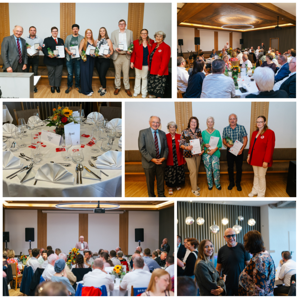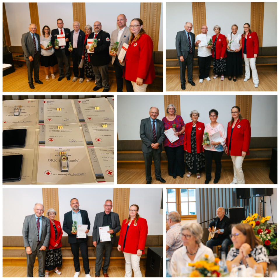 Es ist ein weiter Bogen an Aufgaben, die die Geehrten übernehmen und er repräsentiert nahezu das gesamte Spektrum der Themen, für die das Rote Kreuz im Landkreis steht. Sie bringen sich wie Eduard Mittermaier seit 25 Jahren als Übungsleiter der Bewegungsangebote für Senioren ein, wie Yasmin Schröder als Erste-Hilfe-Ausbilderin oder wie Rüdiger Trautmann in ganz unterschiedlichen Aufgabengebieten. Christian Striso übernimmt in vielfältig Verantwortung, ist wie Antonino Amato insbesondere im Rotkreuz-Landesmuseum engagiert. Unglaubliche 60 Jahre ist Werner Gewehr dem Roten Kreuz verbunden. „Sie sind das Sinnbild für das, was ich schon als kleines Kind mit dem DRK verbunden habe“, betonte Peter Hofelich. Heidi Hagel gehört dem DRK seit 50 Jahren an. Beispielhaft seien hier Cedrik Blank genannt – er wurde mit der Ehrenmedaille in Bronze ausgezeichnet für seinen Einsatz im Jugendrotkreuz. Wie auch Jessica Rödl, die sich auch in der Nähgruppe „RecCross“ einbringt und so ausgemusterter Dienstkleidung zu einem zweiten Leben verhilft. Andrea Boffenmayer – auch sie ist aus der Rotkreuzgemeinschaft nicht wegzudenken. Ihr seit fast 50 Jahren und vielfältig währendes Engagement ehrte der DRK-Kreisverband mit der Ehrennadel in Gold. Sie erhielt auch Raimund Wimmer, der sich für die Bergwacht auch auf Landesebene engagierte. „Wir können uns gratulieren, dass wir so engagierte Mitarbeitende in unseren Reihen haben“, bekräftigte der Präsident des DRK-Kreisverbandes.