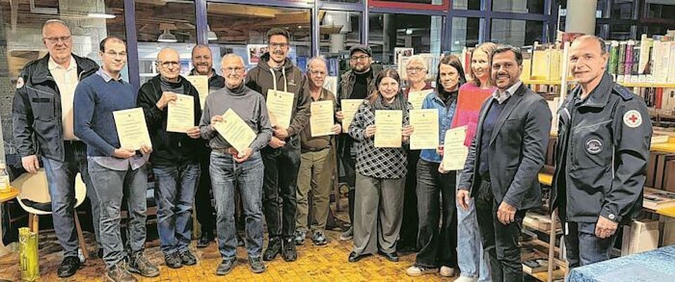 Geislingen - Der Geislinger Oberbürgermeister Ignazio Ceffalia hat vor Kurzem zusammen mit Bernd Hamann, dem Vorsitzenden des DRK-Ortsvereins Geislingen, und dessen Stellvertreter Jens Currle Blutspenderinnen und Blutspender im Lesecafé der Stadtbücherei geehrt. Mit ihren vielfachen Spenden leisten die Geehrten einen unverzichtbaren Beitrag zur medizinischen Versorgung und helfen dabei, Leben zu retten, heißt es in einer Pressemitteilung der Stadtverwaltung. Ceffalia, Hamann und Currle überreichten den Spendern Urkunden sowie Ehrennadeln. „Blutspenden sind ein unverzichtbarer Dienst am Nächsten“, sagte Oberbürgermeister Ceffalia. „Sie zeigen in besonderer Weise gelebte Solidarität und Verantwortungsbewusstsein.“ Zugleich sprach er allen Spenderinnen und Spendern sowie den ehrenamtlichen Helferinnen und Helfern des DRK seinen herzlichen Dank für ihren Einsatz aus. Der nächste Blutspendetermin in Geislingen findet am Dienstag, 17. März, von 14.30 bis 19.30 Uhr in der Jahnhalle statt. Weitere Informationen und Terminreservierung im Internet unter: www.blutspende.de/termine