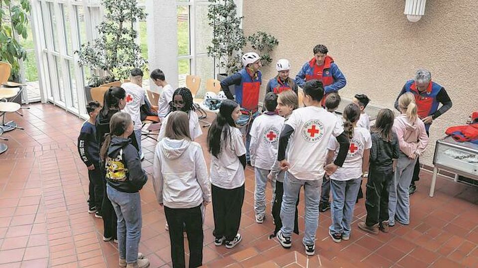 Kreis Göppingen - „Abenteuer Menschlichkeit – das ist die Devise des Deutschen Roten Kreuzes, und auf dieses Abenteuer habt ihr euch eingelassen.“ Mit diesen Worten begrüßte Peter Hofelich, Präsident der Hilfsorganisation im Landkreis Göppingen, laut einer Pressemitteilung des DRK etwa 90 Schüler aus dem gesamten Kreisgebiet zum jährlichen Schulsanitätstag in der Schubart-Realschule in Geislingen. „Unsere Gesellschaft ist eine verletzliche Gesellschaft, es kann viel passieren.“ Deshalb brauche es „Menschen, die mitmachen und sich engagieren und die wissen, wie sie helfen können“. „Ihr seid diejenigen, die in Krisenfällen helfen könnt“, erklärte Sabine Probst, Schulleiterin der Geislinger Bildungseinrichtung und selbst DRK-Therapiehundeführerin, in ihrer Begrüßung in der Mensa.