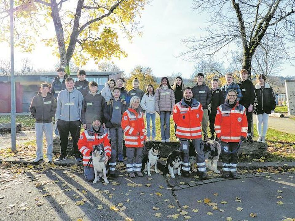 m Rahmen des neuen pädagogischen Bausteins „Lernfamilie“ hat die Heinrich-Schickhardt-Gemeinschaftsschule in Bad Boll die Rettungshundestaffel des DRK eingeladen. Wie die Schule mitteilt, waren vier Rettungshunde unterschiedlichen „Dienstalters“ mit ihren Rettungshundeführern zu Gast und erklärten den Schülern alles über das Training und die Arbeit der Hunde. Dabei konnten die Schüler alle Fragen loswerden, die sie hatten. Ebenso wurden verschiedene Rettungseinsätze simuliert. Für die Hunde gab es als Belohnung für die harte Arbeit natürlich Leckerlis.