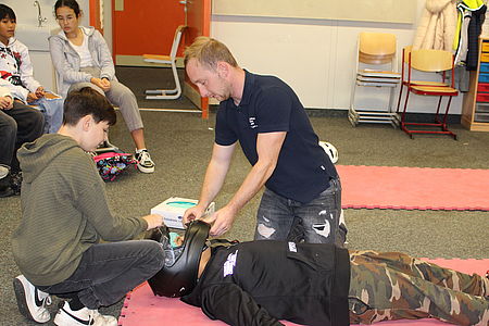Im Rahmen eines Projekttages engagierten sich das Jugendrotkreuz und die DRK-Bereitschaft Unteres Filstal-Schlierbach in der Erste Hilfe-Ausbildung am Raichberg-Schulzentrum in Ebersbach.