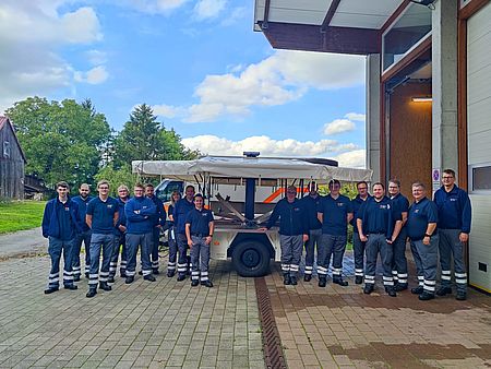 Insgesamt 16 Teilnehmer*innen aus den Bereitschaften Hattenhofen und Schlierbach schwangen bei der Ausbildung zum Feldkoch*in in der Fahrzeughalle in Hattenhofen die Kochlöffel.