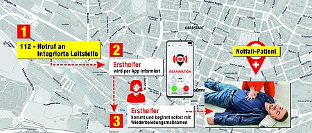 Schnelle Hilfe rettet vielleicht Leben. Ersthelfer können sich in einer App registrieren lassen und werden bei einem Herzkreislaufstillstand in ihrer Nähe automatisch alarmiert.