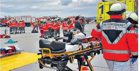 Übung Bei der großen Notfallsimulation am Wochenende am Stuttgarter Flughafen war auch der Rettungsdienst des Roten Kreuzes aus dem Kreis Göppingen im Einsatz. Seine Aufgabe war der Transport von Verletzten.