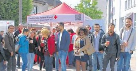 Gratiskaffee gab’s gestern anlässlich des Weltrotkreuztages auf dem Göppinger Wochenmarkt. Ein Integrationskurs der Göppinger VHS unterbrach deshalb sogar die Stadtführung für die kleine Kaffeepause.